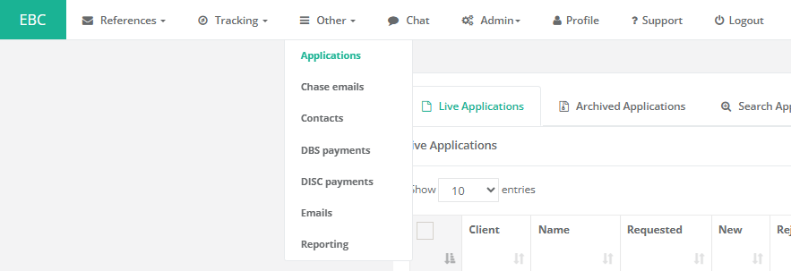 You will then see a list of your current applications. Click the name of the application to view the candidates within, and to send new requests.