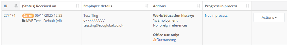 The Actions menu gives you a few options to review the information and documents provided by the candidate.